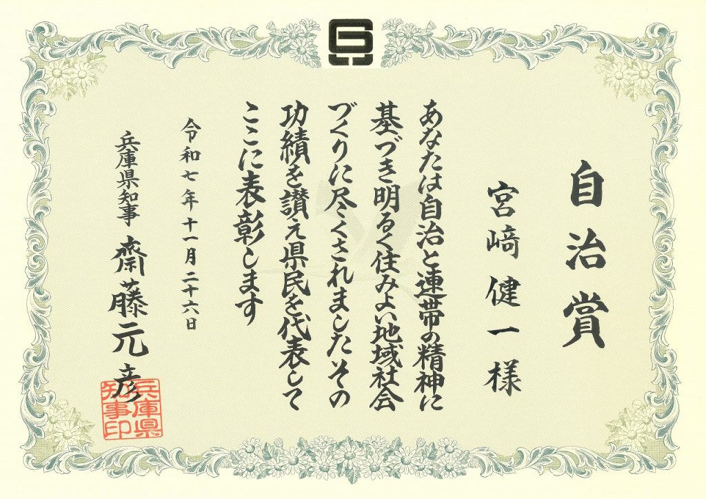 お知らせ兵庫県様から表彰されました